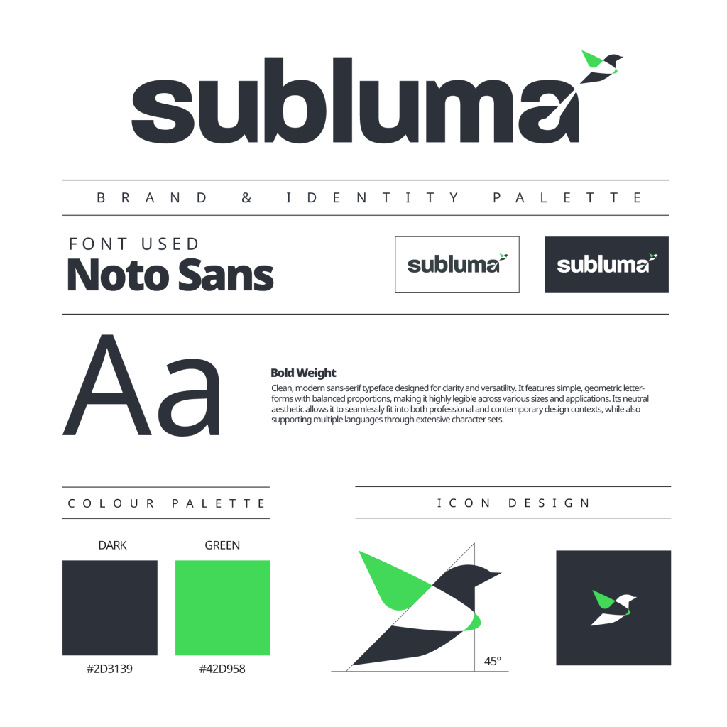 2026 Subluma icon with a bird going “upwards” AT 45° and “green” to send a message of clean energy Aligning with todays sustainable and environmentally friendly approach